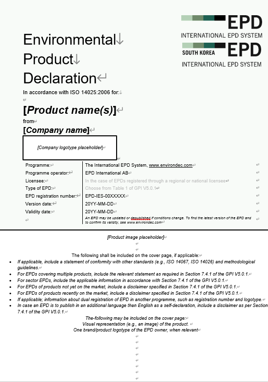 EPD 템플릿 - 기타 모든 제품 카테고리: 한국 전용 템플릿